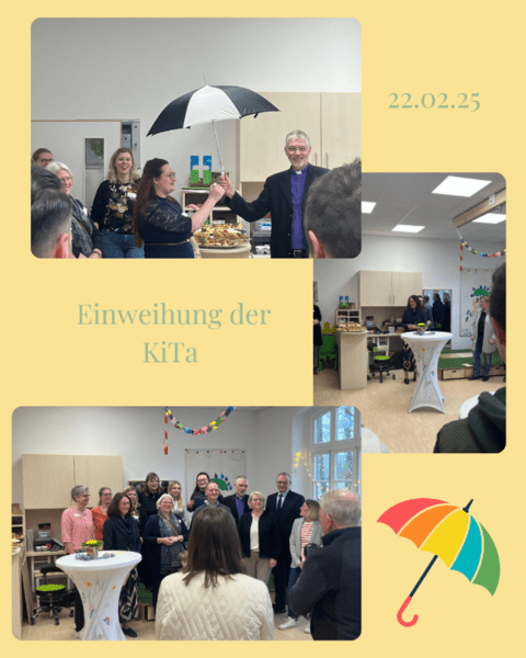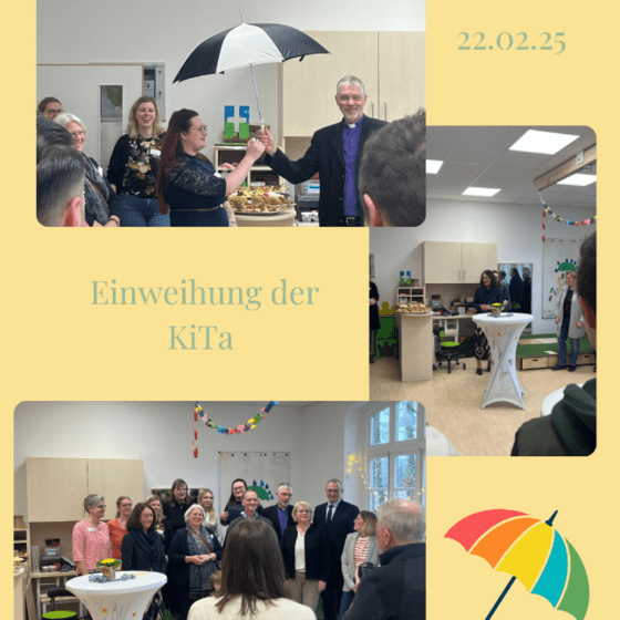 Die Veranstaltung begann mit einer Andacht unter dem Thema „Unter Gottes Schirm“. Im Anschluss folgten Reden, in denen die Bedeutung der neuen Einrichtung für die Region betont wurde. Besonders hervorgehoben wurde die familiäre Atmosphäre unserer KiTa sowie ihre naturnahe Lage, die den Kindern vielfältige Entfaltungsmöglichkeiten bietet.